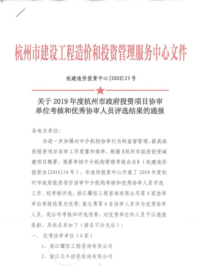 2020年度杭州市政府投资项目概算、财务决算良好协审单位