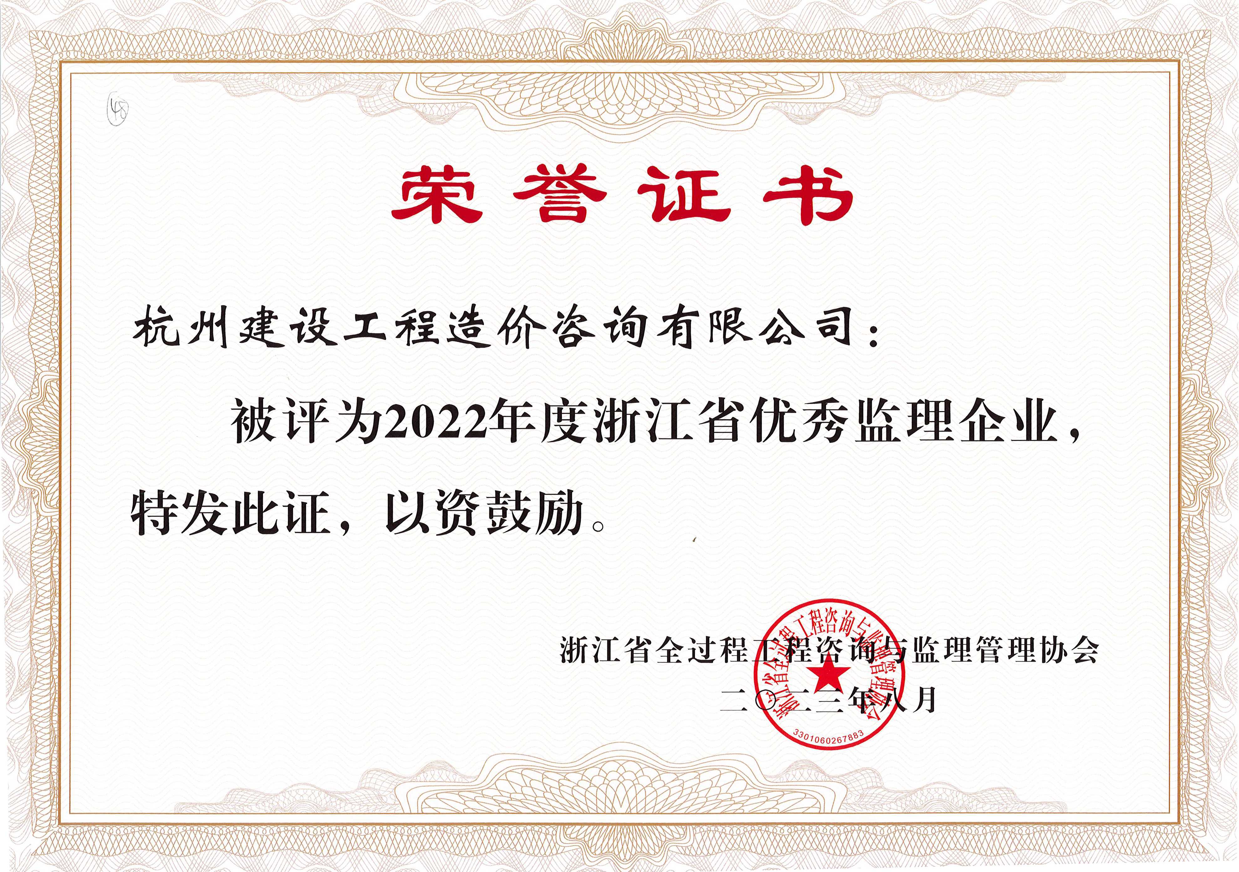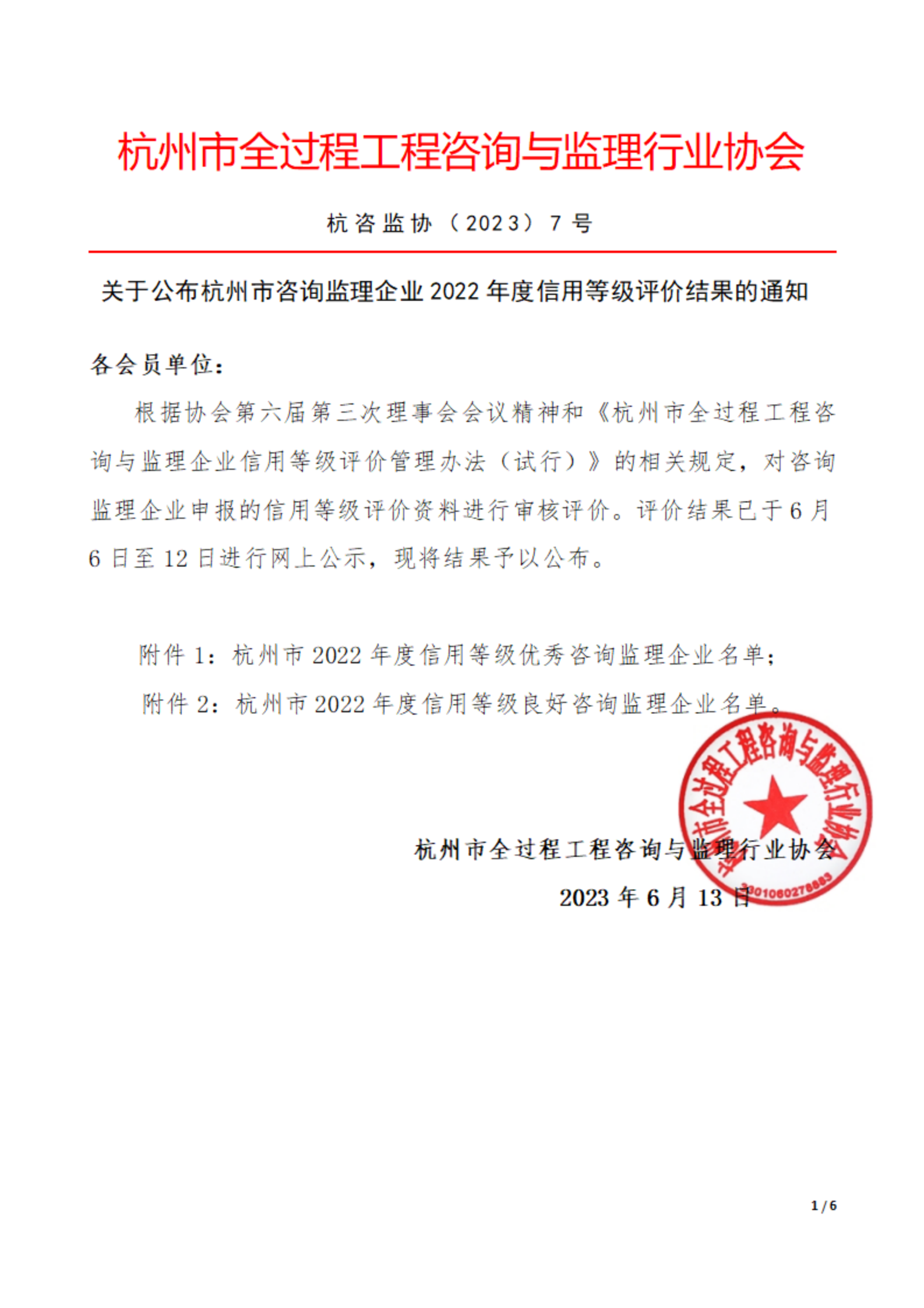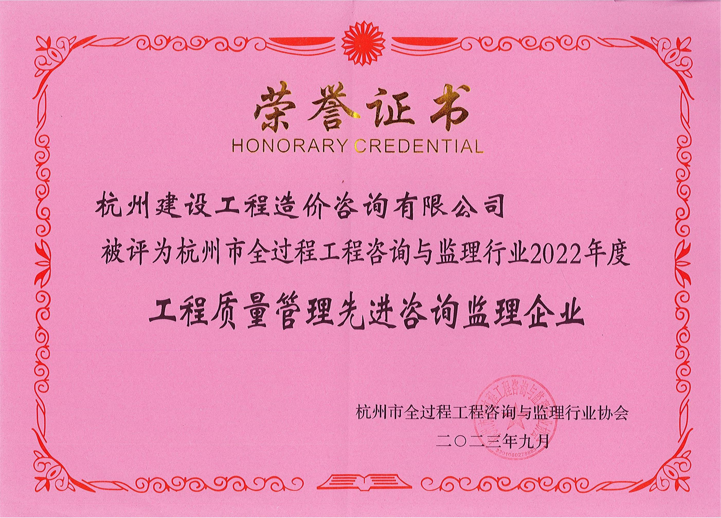 杭州市全过程工程咨询与监理行业2022年度工程质量管理先进咨询监理企业