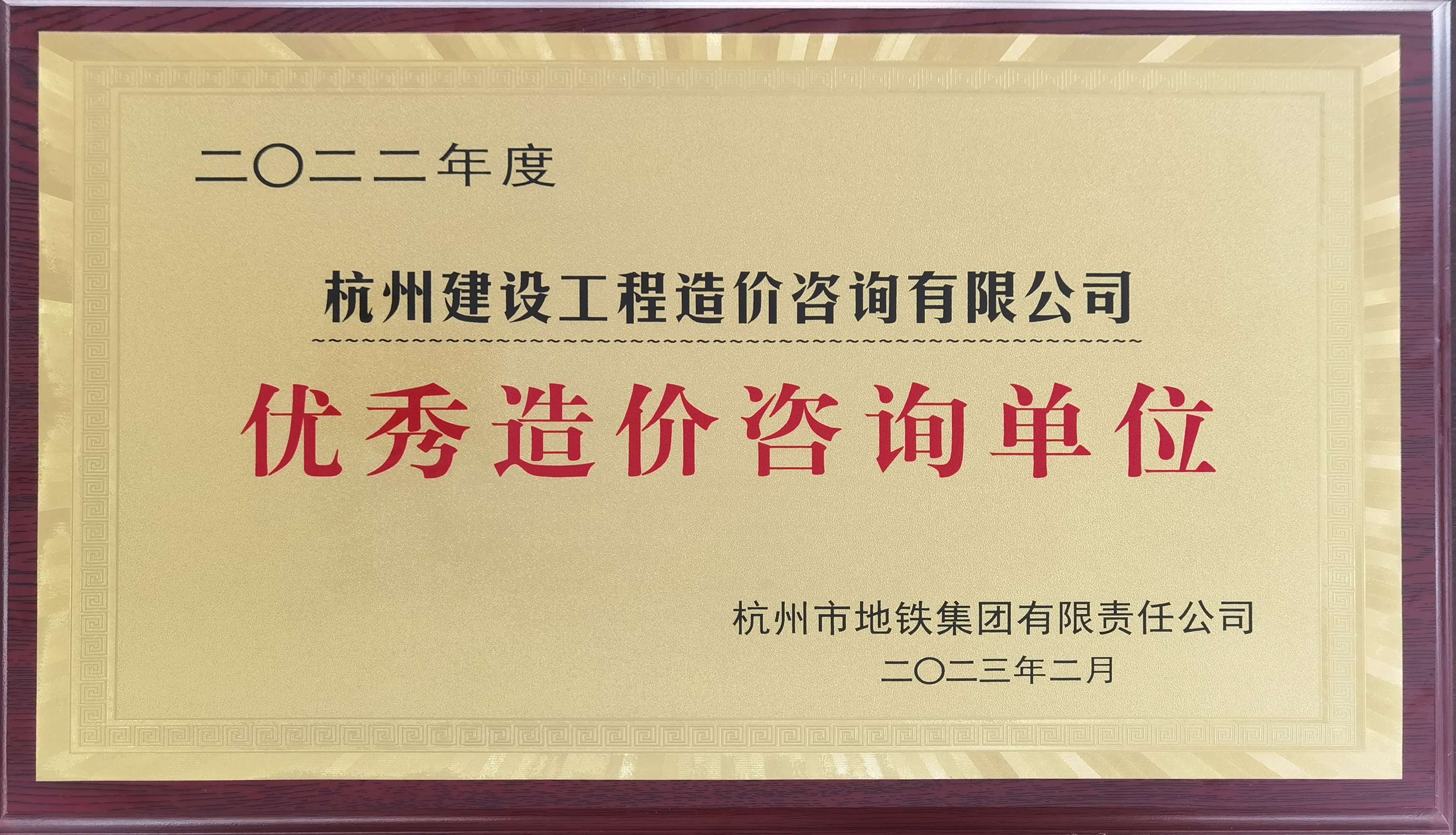 杭州市地铁集团有限责任公司2022年度优秀造价咨询单位